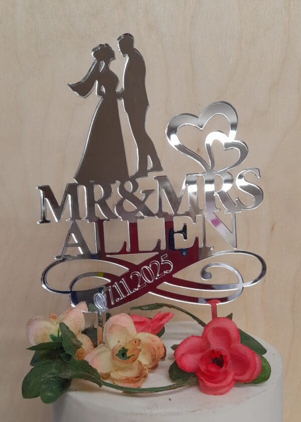 Bride & Groom Wedding Cake topper personalised with Surname and Date. It’s a lovely way to celebrate your wedding