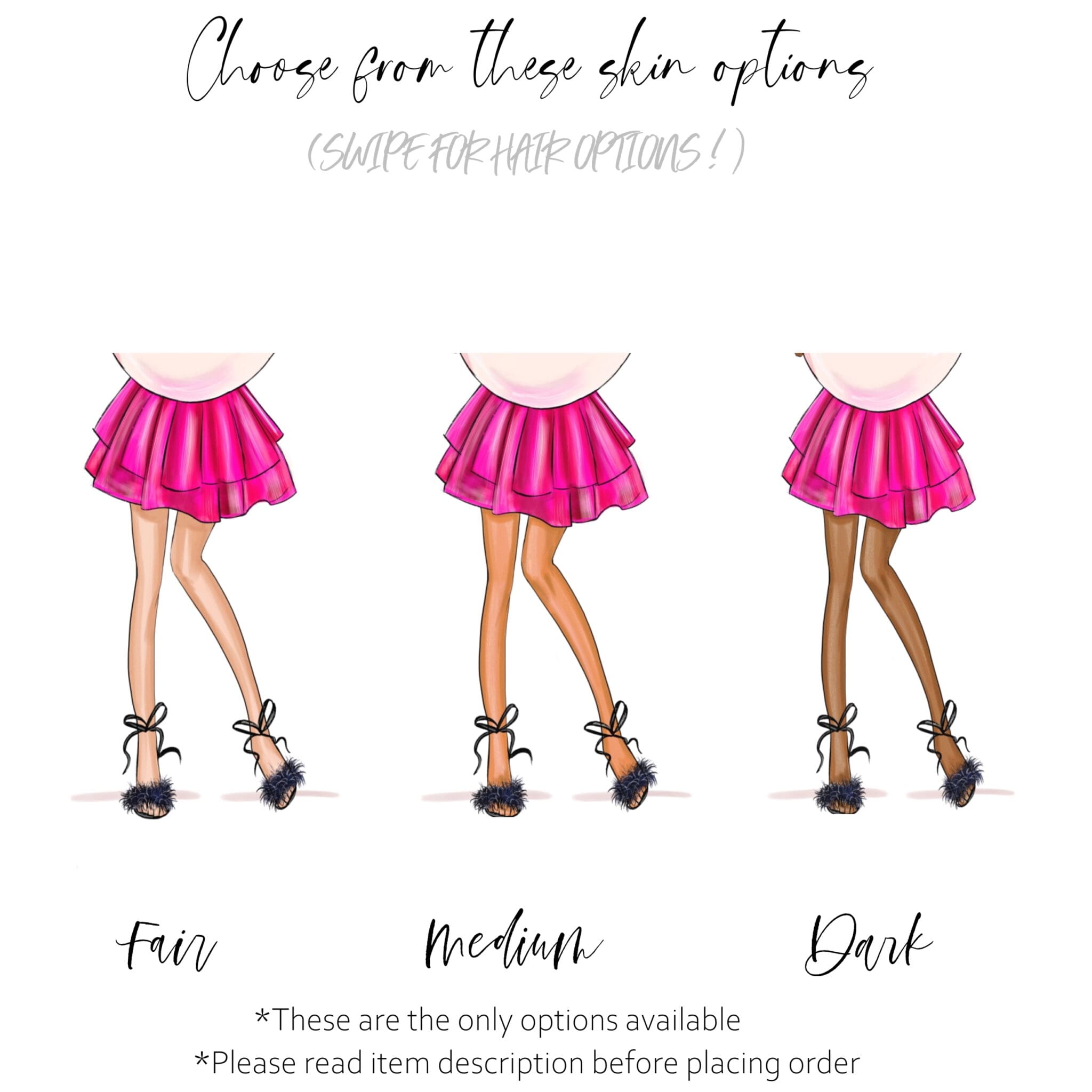 This print can be semi – customised by choosing a hair/ skin colour from options shown in photo examples.
