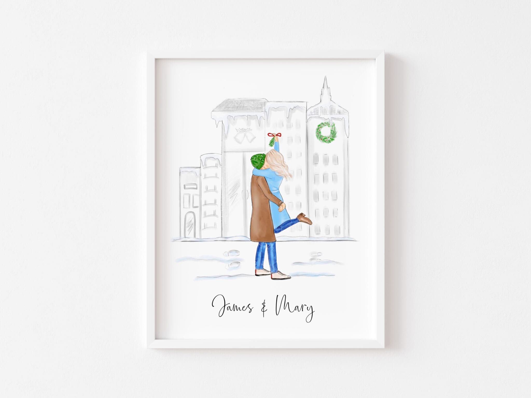 Be the first to review “Art Print – Mistletoe Kiss Winter illustration”