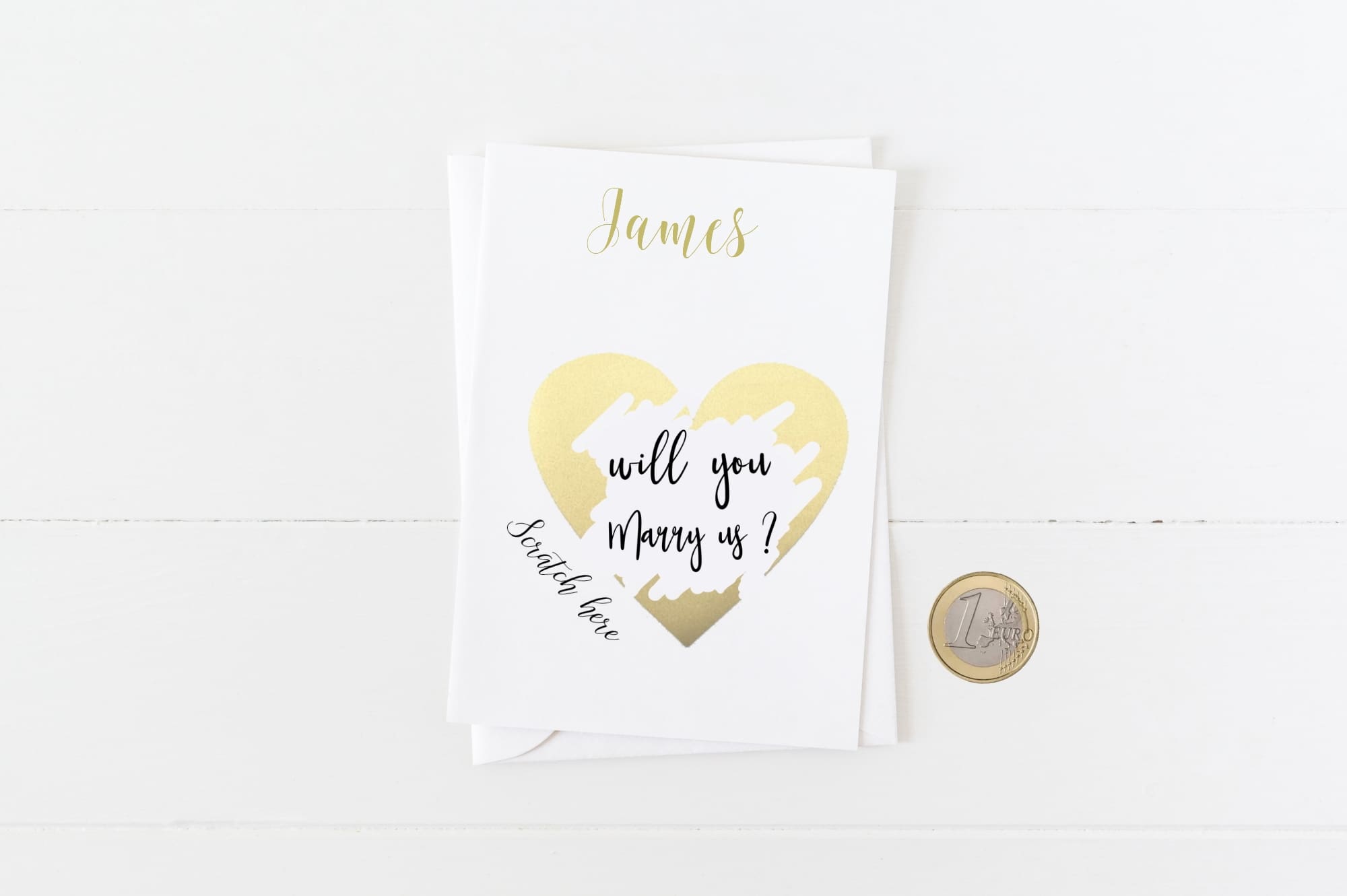 These are fun ask cards which can be personalised by adding a First Name , the recipient scratch’s off the foil heart to reveal message